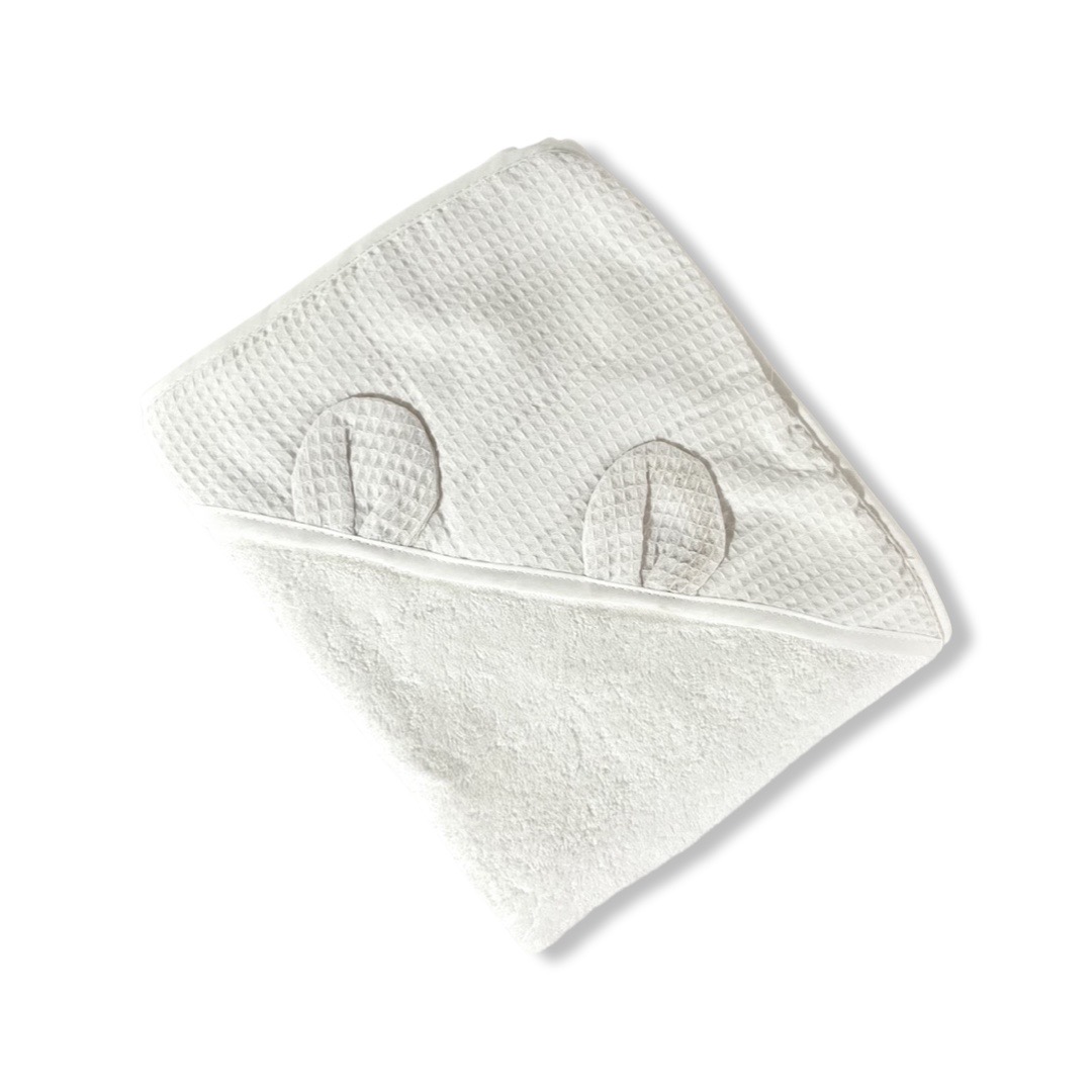 • מגבת רחצה (90*90) נעימה ומלטפת עם כובע מבד פיקה ואזני דובי מתוקות. עשויה 100% כותנה איכותית ועבה.