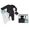 • סט בגד גוף בגזרת מעטפת בצבע לבן  (NB-3) עשוי 100% כותנה רכה ונעימה עם עיצוב ייחודי ומקורי ומכנס רגלית בצבע שחור.