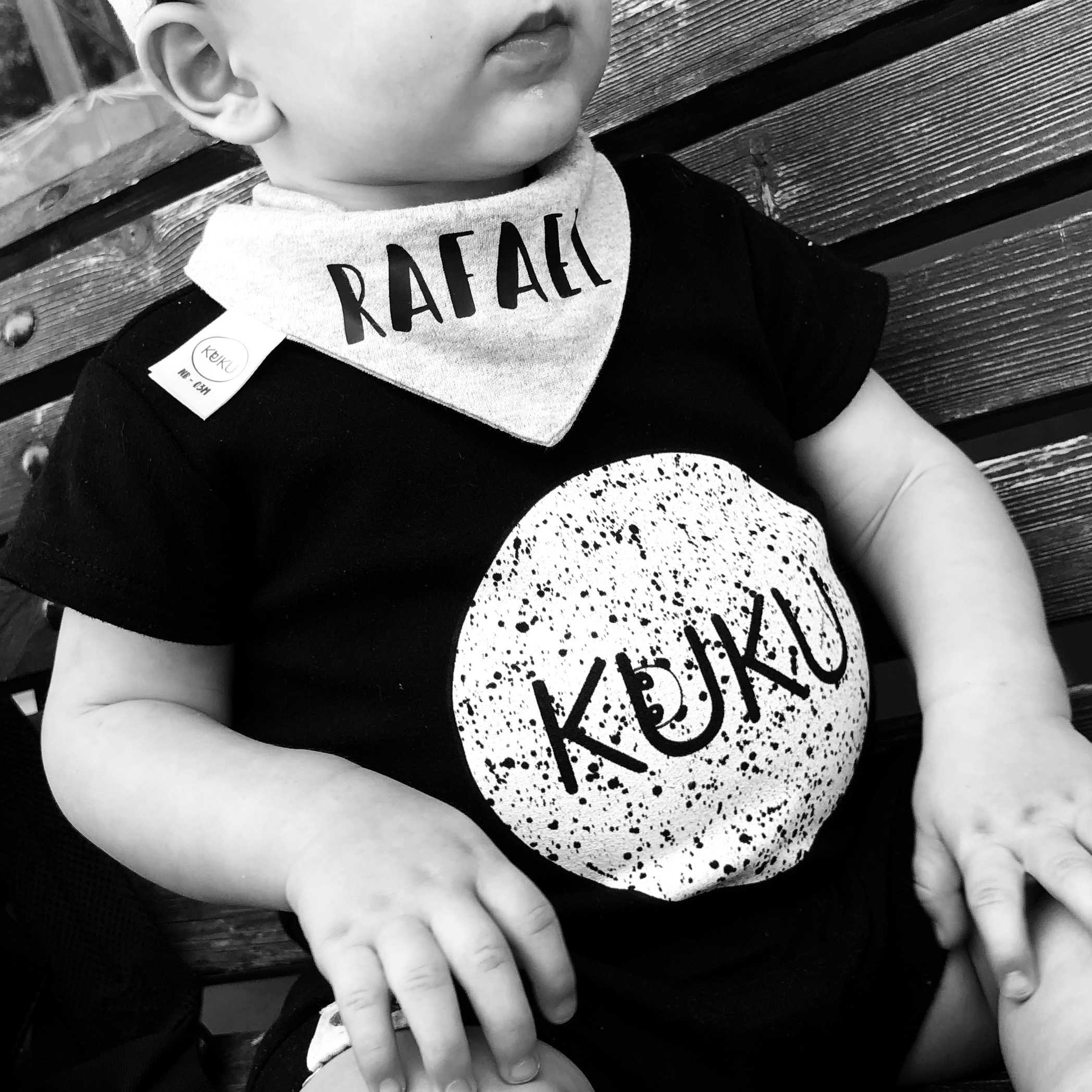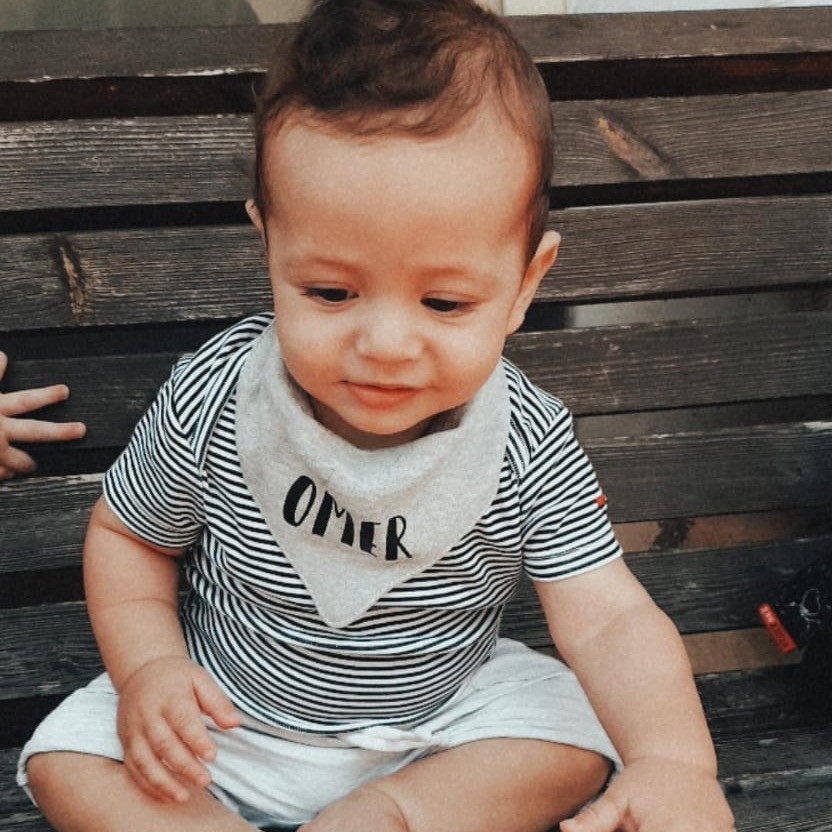 סינר בנדנה מעוצב – מיתוג שם התינוק