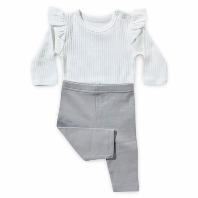 סט בגד גוף ריב וטייץ בצבע אבן